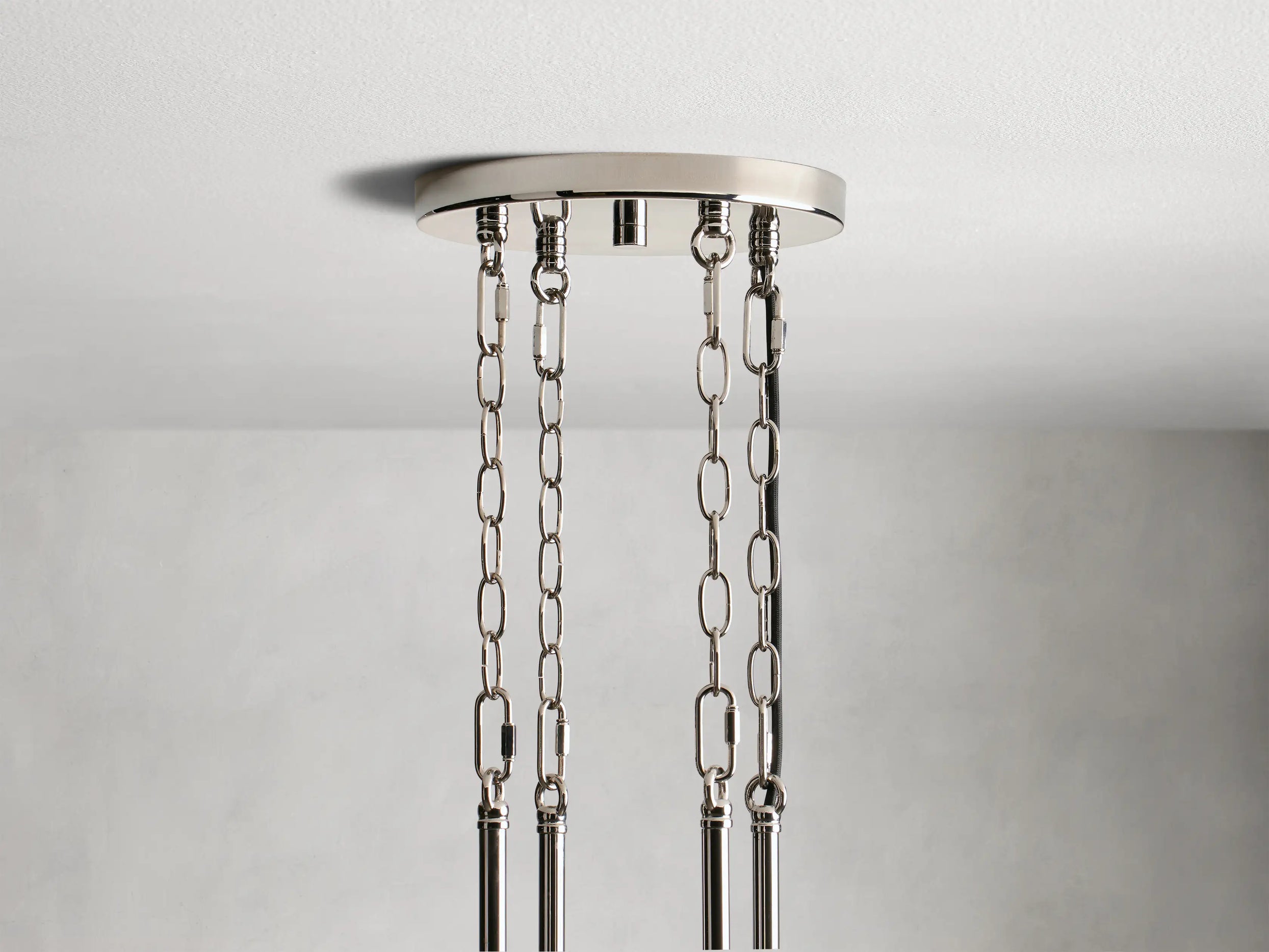 - Includes 16 interchangeable extension rods/chains for hanging—four 6" rods, four 12" rods, four 18" rods, and four 108" chains.
