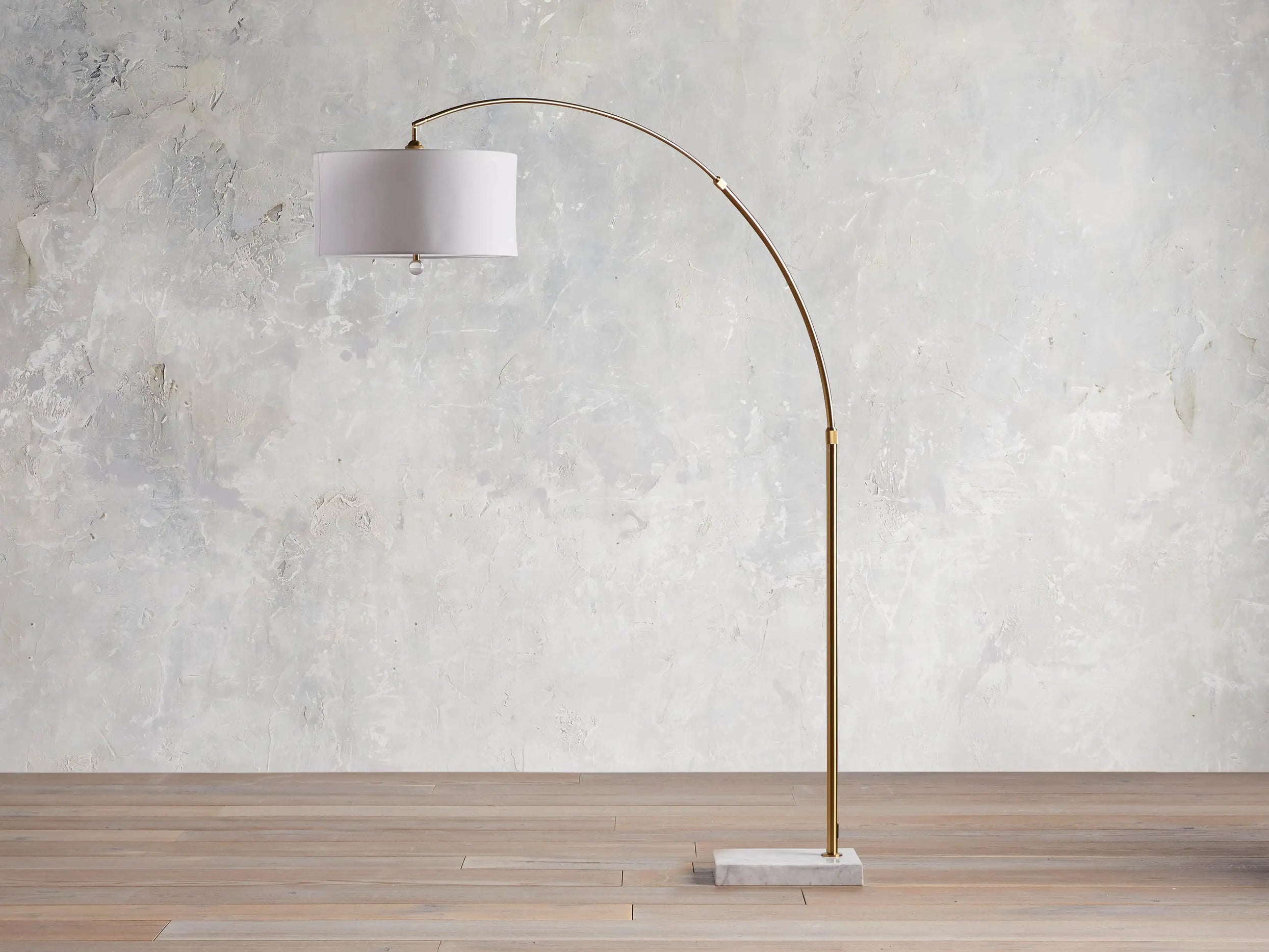 Featuring a dramatic arched silhouette, our Arc Lamp collection is designed to make a statement in any living space. Anchored by a natural marble base, Arc's warm metallic finishes feature hand-painted accents for an extra-special touch.